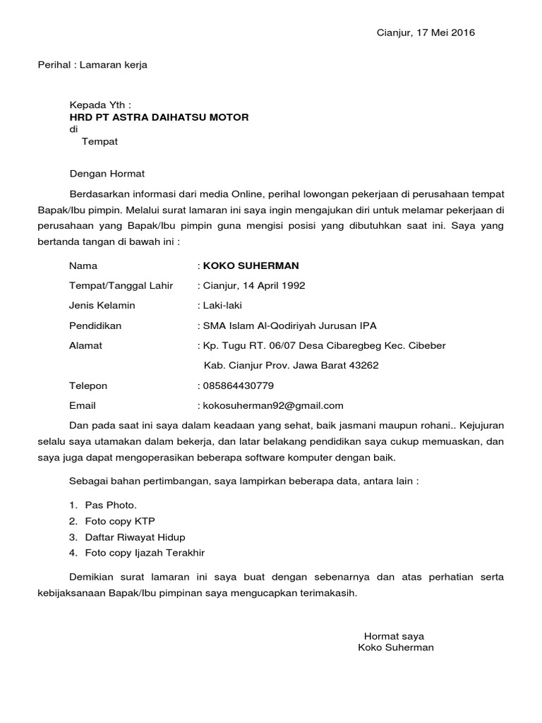 Surat Selngkap Contoh Surat Lamaran Kerja Di Pt Astra Daihatsu Motor