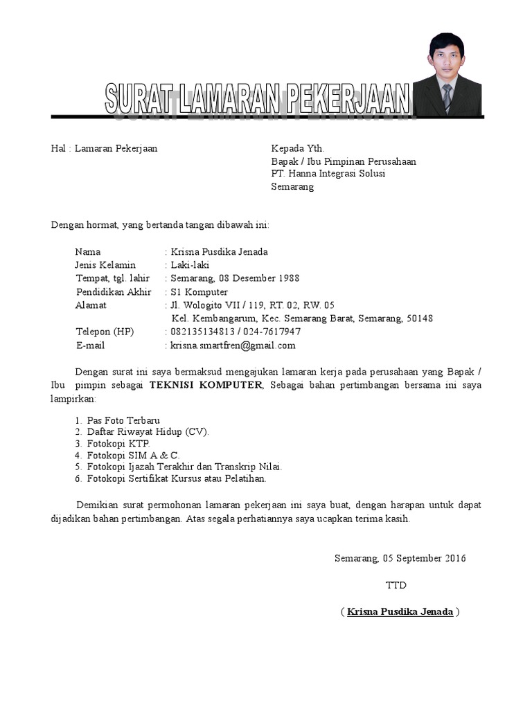 Contoh Surat Lamaran Pekerjaan Yang Baik Dan Benar Kib