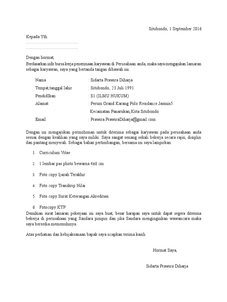 Surat Lamaran Kerja Untuk Perusahaan Yang Belum Diketahui