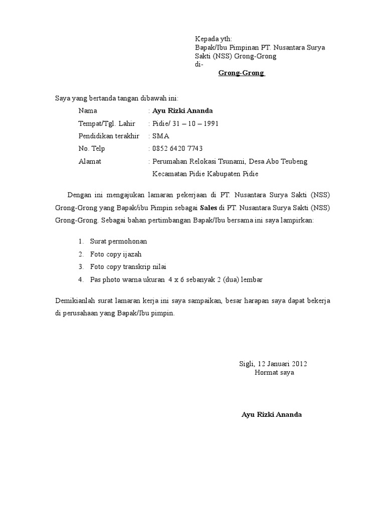 Surat Lamaran Ayu