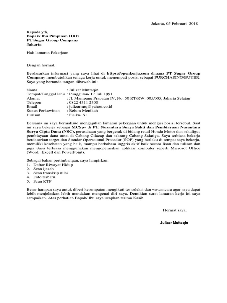 Surat Lamaran Kerja Indonesia Baru