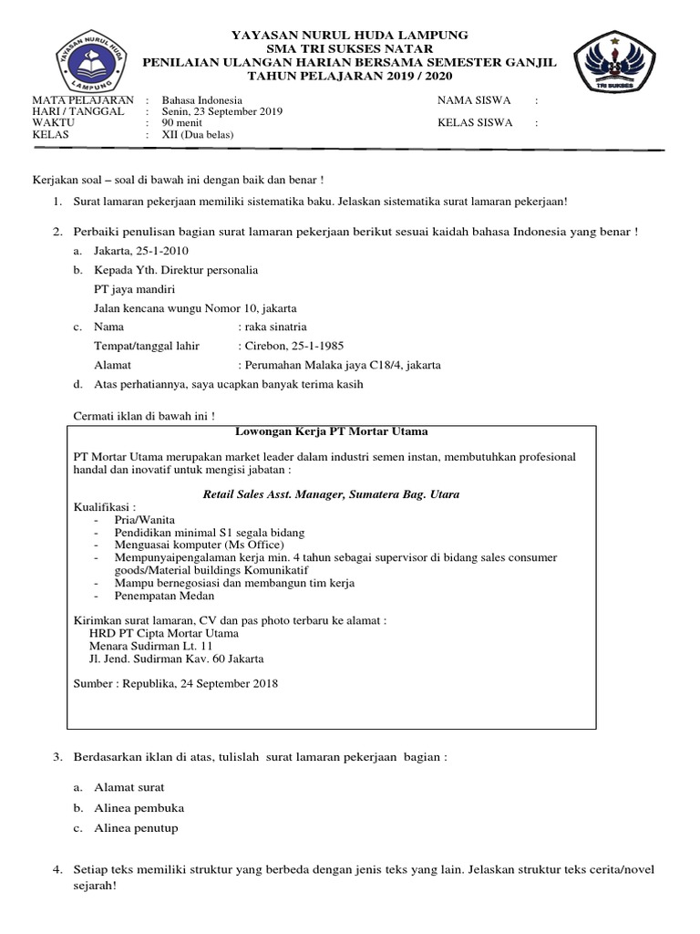 Surat Lamaran Pekerjaan Berdasarkan Iklan Lowongan Kerja Pt Mortar Utama