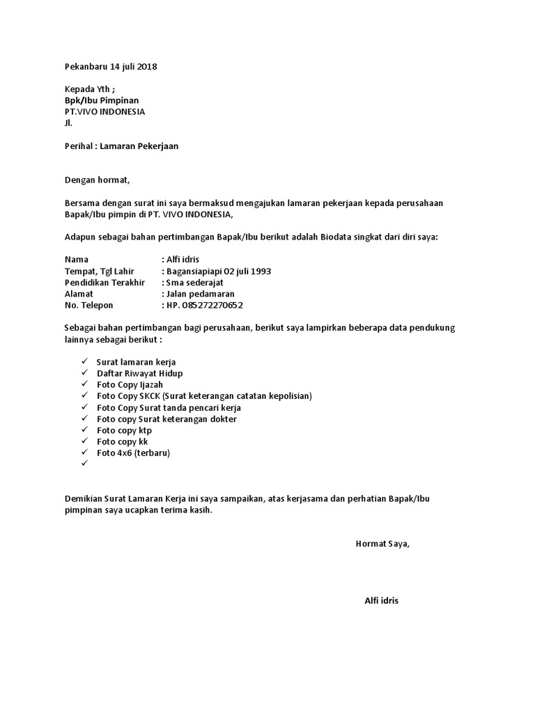 Surat Lamaran Kerja Pt Yamaha