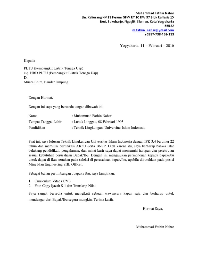 Surat Lamaran Pltu