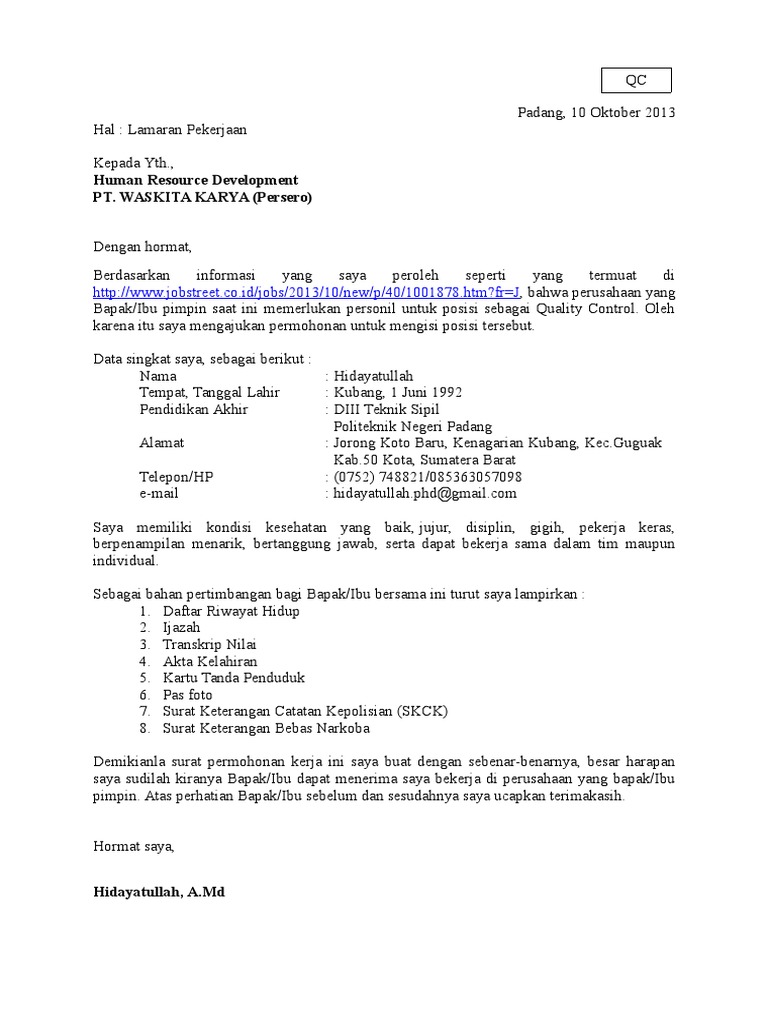 Great Contoh Surat Lamaran Kerja Qc 52 Bagi Ide Menulis Surat
