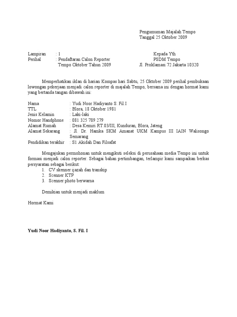 Contoh Surat Lamaran Kerja Reporter Contoh Surat Lamaran Kerja