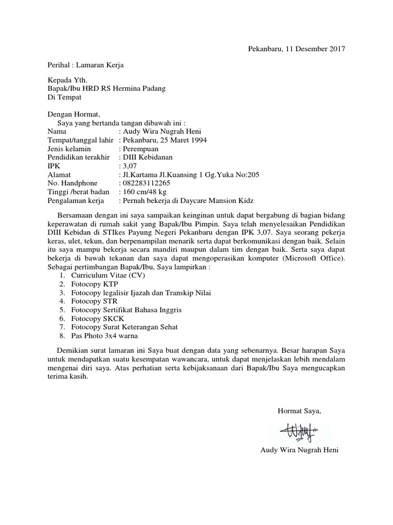 Contoh Surat Lamaran Kerja Rs Hermina Tulisanviral Info Cuitan
