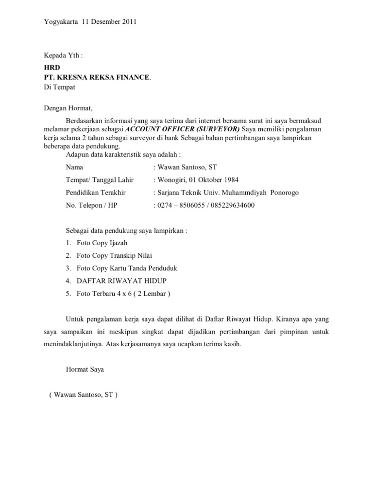 Contoh Surat Lamaran Kerja Surveyor Cv Kreatif Pendidikan