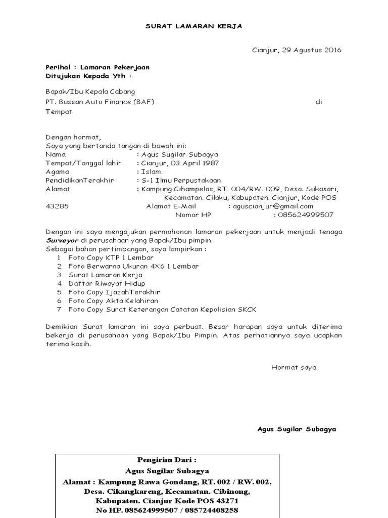 Contoh Surat Lamaran Kerja Cv Terbaru Cekkembali