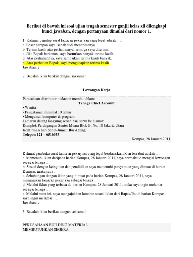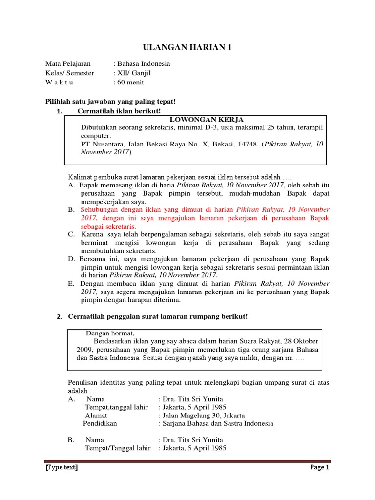 Latihan Soal Pas Bk Bahasa Indonesia Docx