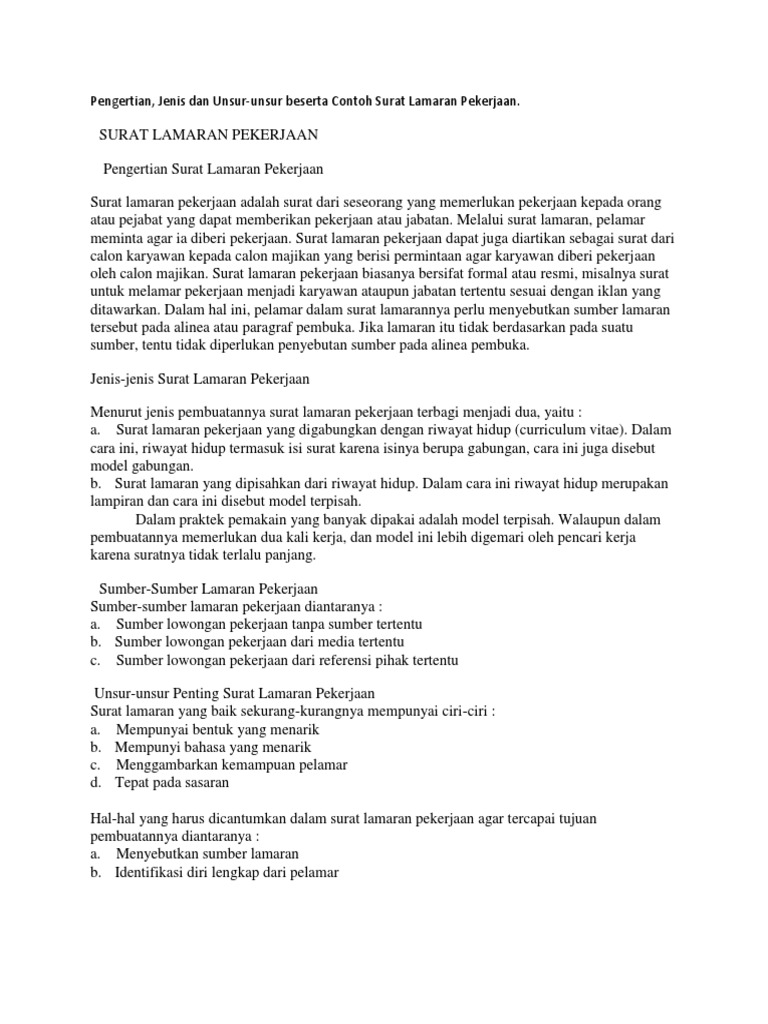 Surat Lamaran Pekerjaan Lengkap Jenis Jenis Cara Membuat Sumber Sumber Bagian Bagian Surat Lamaran Pekerjaan Job Application Letter Job Application