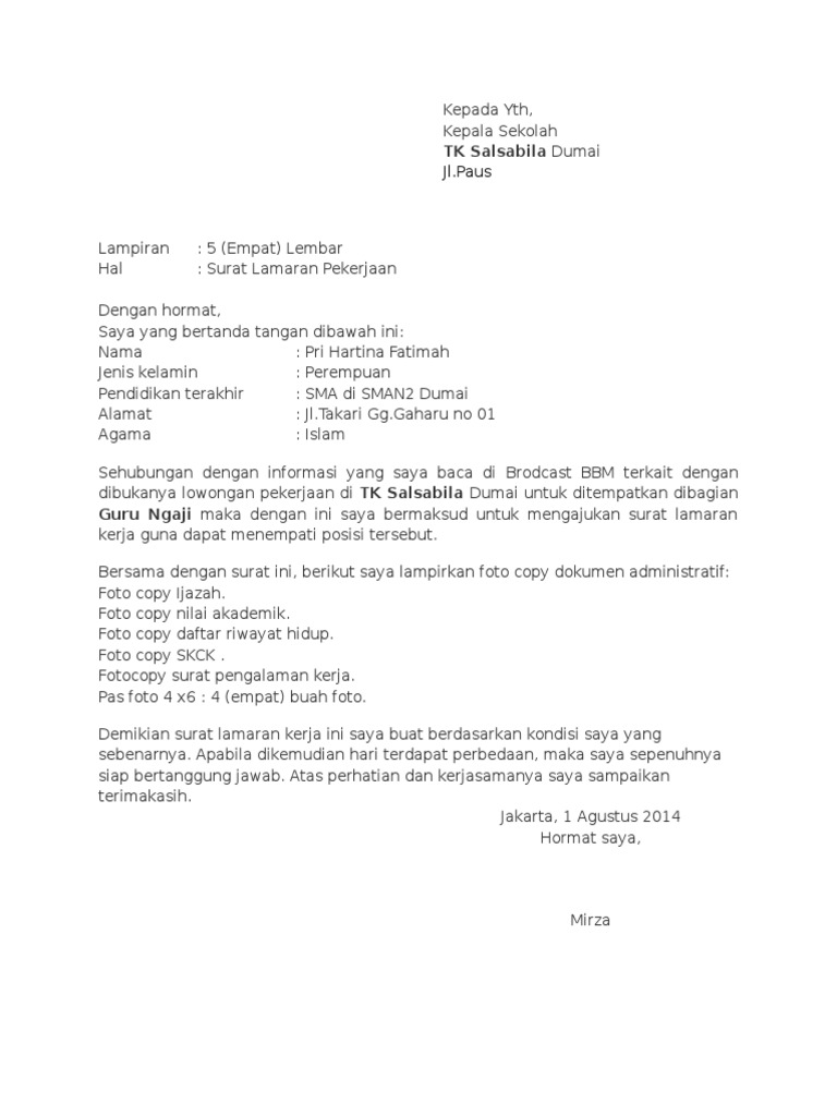 Swasta Contoh Surat Lamaran Kerja Sekolah
