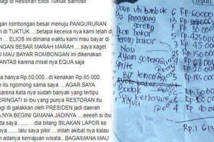 Viral Tagihan Restoran Rp 1 6 Juta Di Samosir Pemilik Biaya